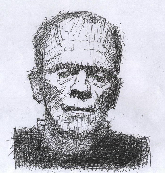 The fact that Stan draws characters from horror movies, I think also has a deeper meaning. While these characters are aggressive, powerful—and damn cool looking—each one also has a vulnerability to them. Something that is being protected by their aggressive outer nature. Frankenstein is a great example of this, and looking at Stan’s rendition of this classic movie monster, the lines are not only forceful, but there is also this feeling that the whole drawing might fall apart if handled too roughly. The characters in horror movies have always been associated with heavy metal music for me, and others of course, and I think this is because the movies/music create this barrier between the individual and the outside world. For those that have experienced pain and suffering, having something to buffer those emotions is important. Horror movies and heavy metal do not create violent people, those that know pain and despair are simply attracted to these forms of art because they are not afraid to look at that mirror. As they say, “better the devil you know than the devil you don’t”. Dark art, horror, and dark music is the devil they know.