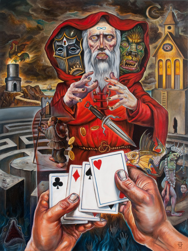 Christopher Ulrich is an artist working out of Los Angeles, CA. His work is filled with surreal, iconographic imagery. Following his Demoneater, and Illuminator shows, Christopher will be opening his latest solo show at La Luz De Jesus, The Reckoning in December 2012.