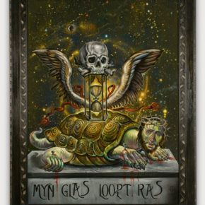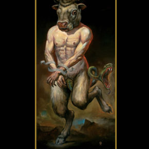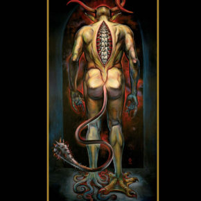 Christopher: On 12-7-12 I will have a show, which I am currently working on, titled “Christ Chronocrater – The Reckoning – Series 3”. It will feature 12 new works. My intent is the creation of something magical. It is an alchemic operation of faith from the perspective of doubt transformed. It is greater and stronger than I am and to speak of it is misleading. The “Reckoning” is not a final judgment; instead it implies a settling of all accounts. The whole body of work is based on the twelve operations. The series climaxes with the “Last Supper” which is located at the point where the serpent’s mouth swallows its tail. This series is the third and last chapter of a process I started in 2005, which I had the opportunity to show series 1 in 2007 on Day of the Dead. Demoneater began the process. It was the black. I then showed series 2 “Illuminator: The Royal Wedding” on August the sixth, 2010. It was the white. This last series will be the reddening, and for anyone who can come to see it on that night will be a part of something wondrous.