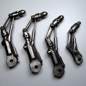 I used the lost wax process to create the components for the arm. The process starts with wax models which are poured from silicone molds that had been made from my original prototype with the help of a company called Creative Models and Prototypes in Hicksville, NY. The wax copies are then cleaned up and prepared to be set inside an investment cast (a mix of silicone and plaster). After hardening, this investment cast (a negative mold which captures the wax) is then fired in an oven to burn out the wax.