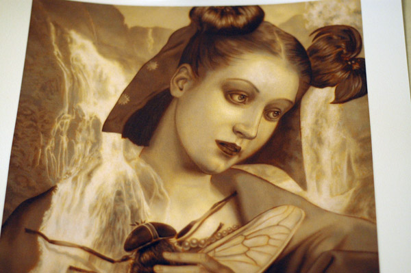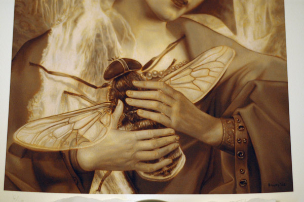 I started out the review section in order to talk about prints and collectibles, but haven’t really had the chance to do this for far too long. I was able to get a hold of John Brophy’s “Madonna and Horsefly” print that can be found at Roq la Rue and felt it deserved a review. The print is on heavy watercolor stock, 10 3/4″ x 13 1/4″, with a paper size of 13 1/4″ x 15 3/4″. It is signed and numbered in an edition of only 10 for $150.